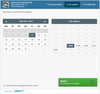 Danach wählen Sie Ihren gewünschten Tag und Uhrzeit aus. Sollte am selben Tag kein Termin mehr frei sein, klicken Sie bitte in den nächsten freien Tag. Sobald der Tag ausgewählt ist, klicken Sie